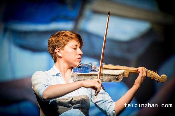 回收音乐会的宣传照,正在拉环保小提琴的青少年