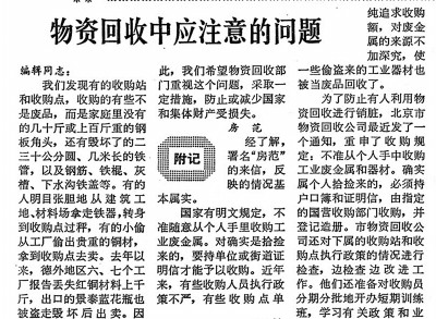 在本报监督下,当时的物资回收主管部门专门下发通知,重申收购规定,并对下属收购站和收购点执行政策情况进行检查,还对收购员分期分批地开办短期政策培训班,提升业务水平。此后,这一现象逐渐减少。